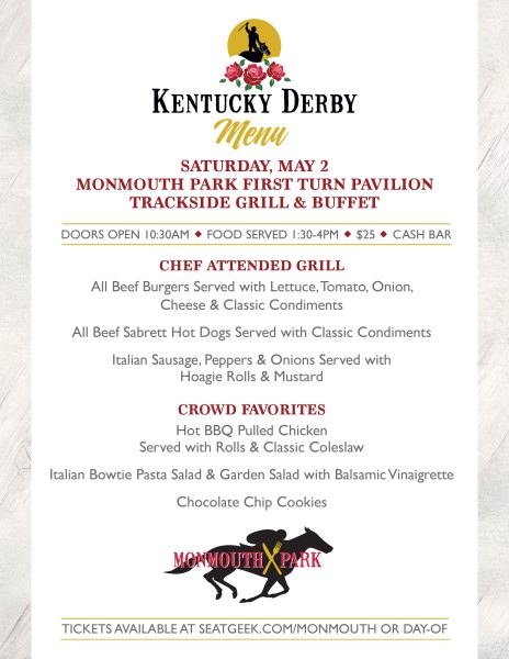 Watch and wager on The Kentucky Derby from Monmouth Park on Saturday, May 2. Day-of walk-up tickets will be available.